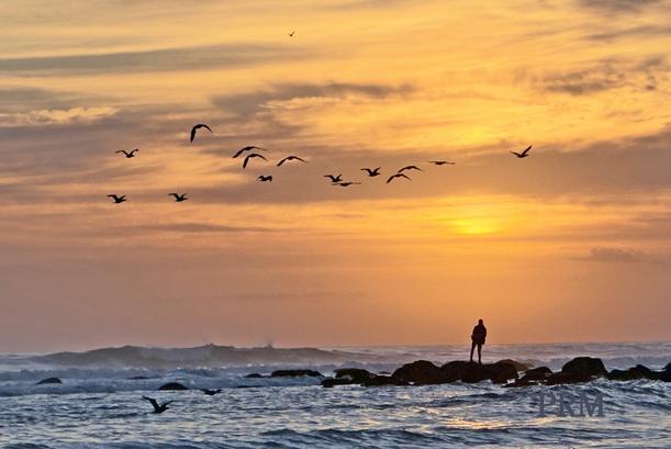This image is a meditation on presence: the figure standing alone, the flock in flight, the endless rhythm of water and wind. For me, it’s a reminder that even in solitude, we are part of something larger—a flow of light, life, and possibility.